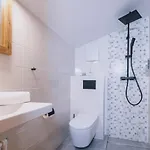 This apartment is equipped with a bathroom that features hairdryers, toiletries, and towels. Additionally, you'll find a separate toilet and a shower.